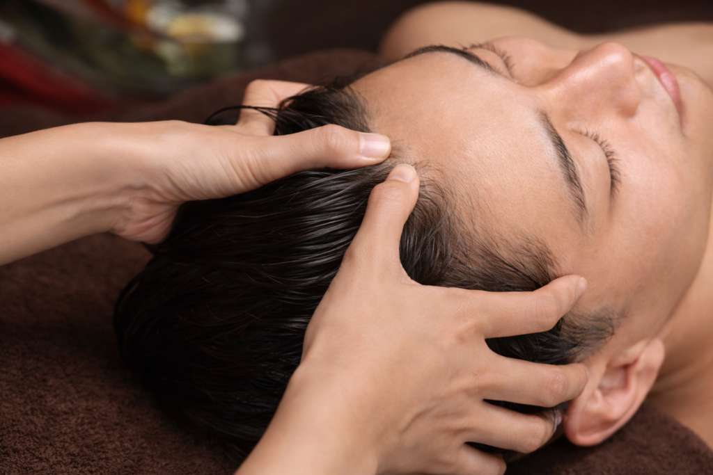 頭皮のコリをほぐしながら、頭皮の炎症を緩和し、不純物を残留させない為に専用のクリームで頭皮マッサージをしていきます。